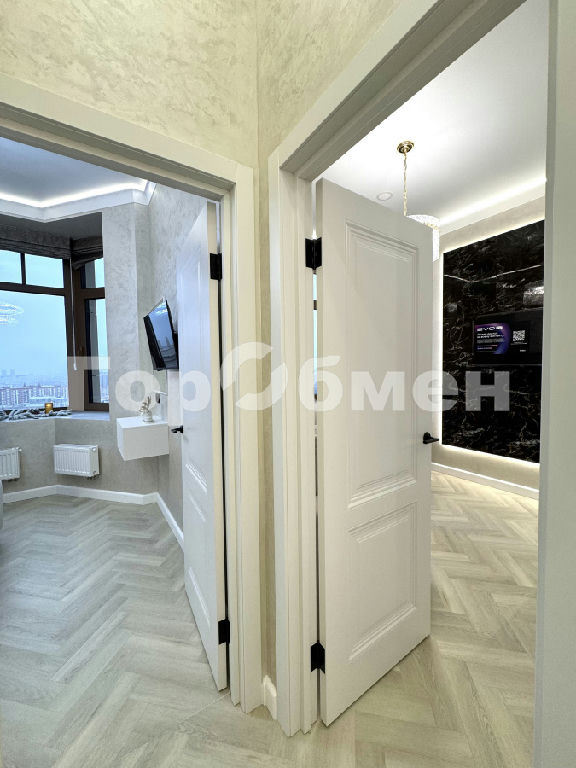 Водостойкое покрытие полов - кварц винил. Алюминиевые окна с тройным остеклением. Большое кол-во мест хранения. Спальня 10квм. с эркером и завораживающим видом из окна на Москва-Сити.